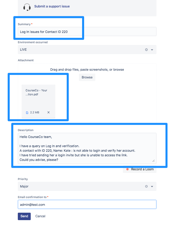 Please see a sample support ticket example for your reference when you log a support call with us.