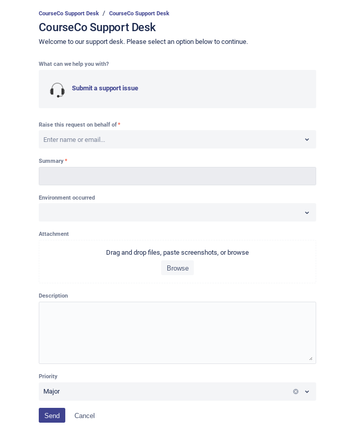 The CourseCo Support Desk page will be displayed.
