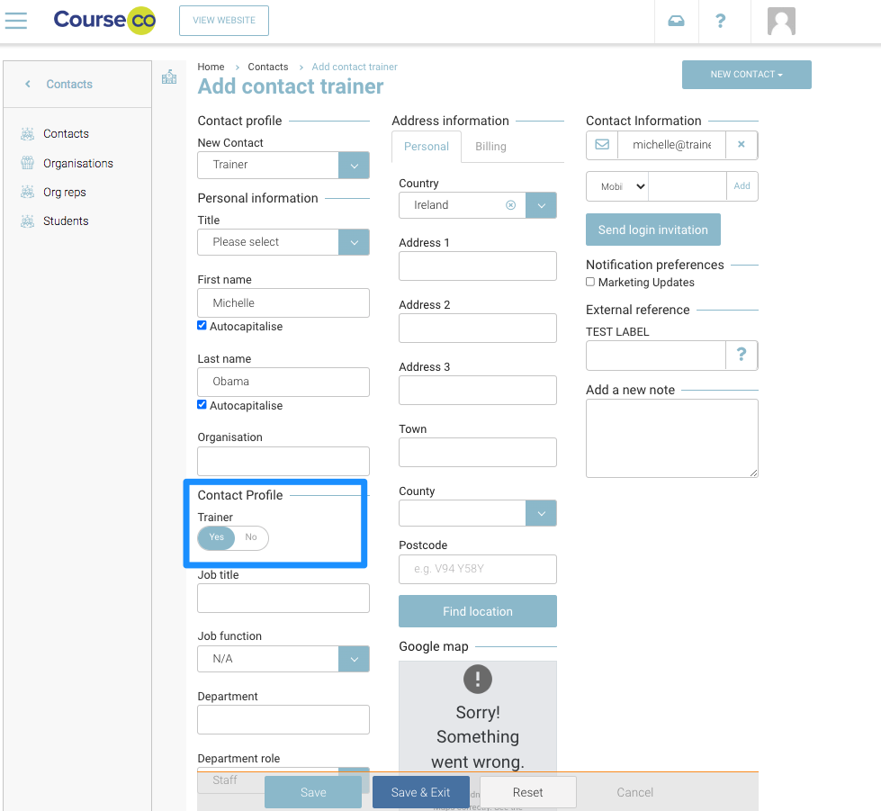 Select contact type as Trainer from dropdown