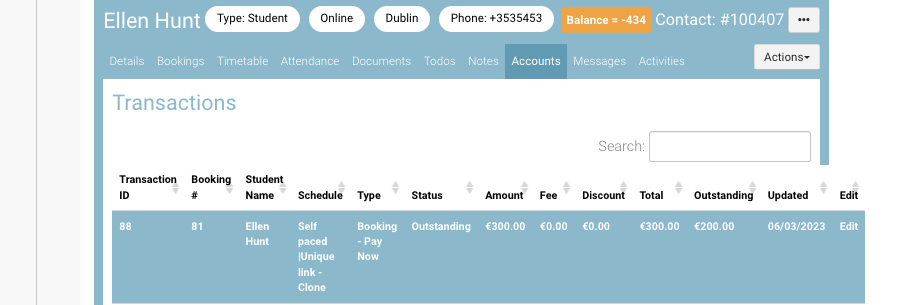 Click on the transaction to view the flexi payment plan for the booking