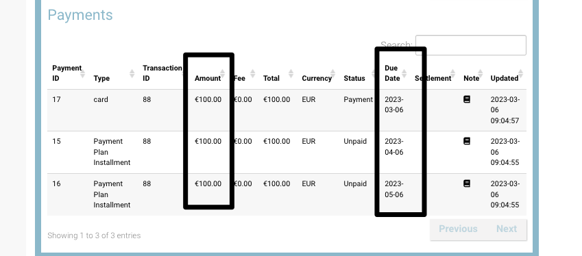 Admin can view due dates and due amount of a flexi-payment booking