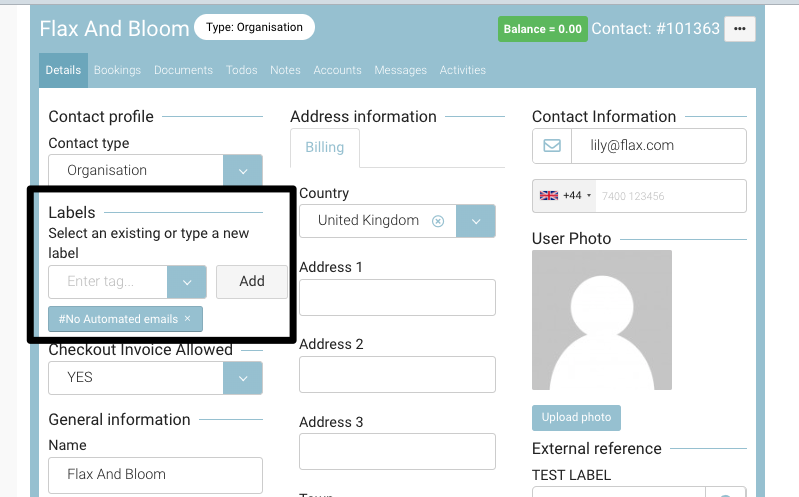 When an organisation has the assigned label saved, no bookings made under that organisation will receive confirmation emails or reminder emails