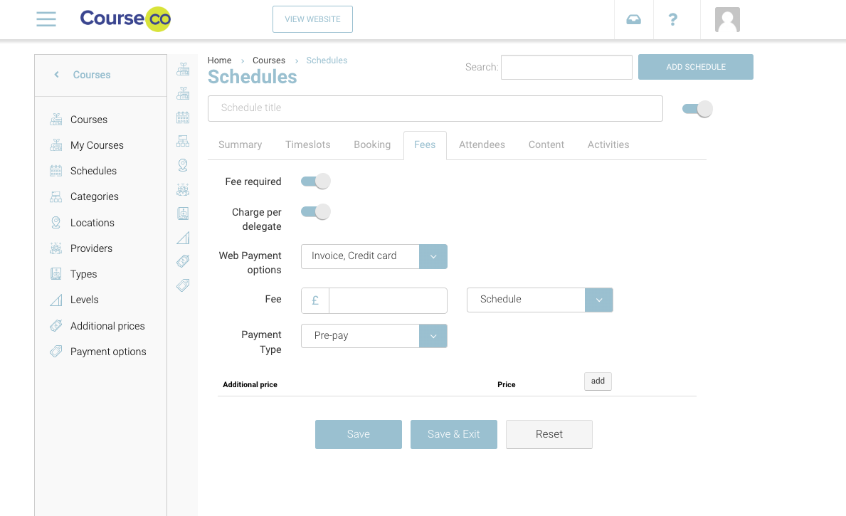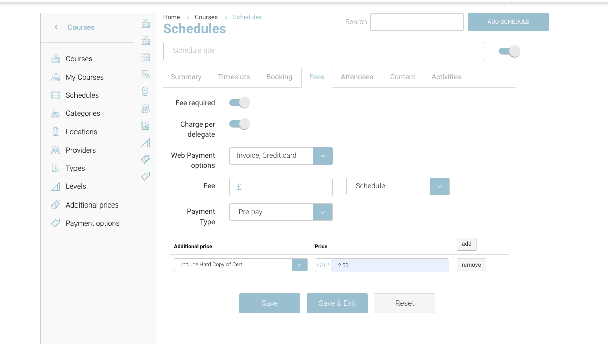 When you reach the schedule > Fee tab, you will see a new option