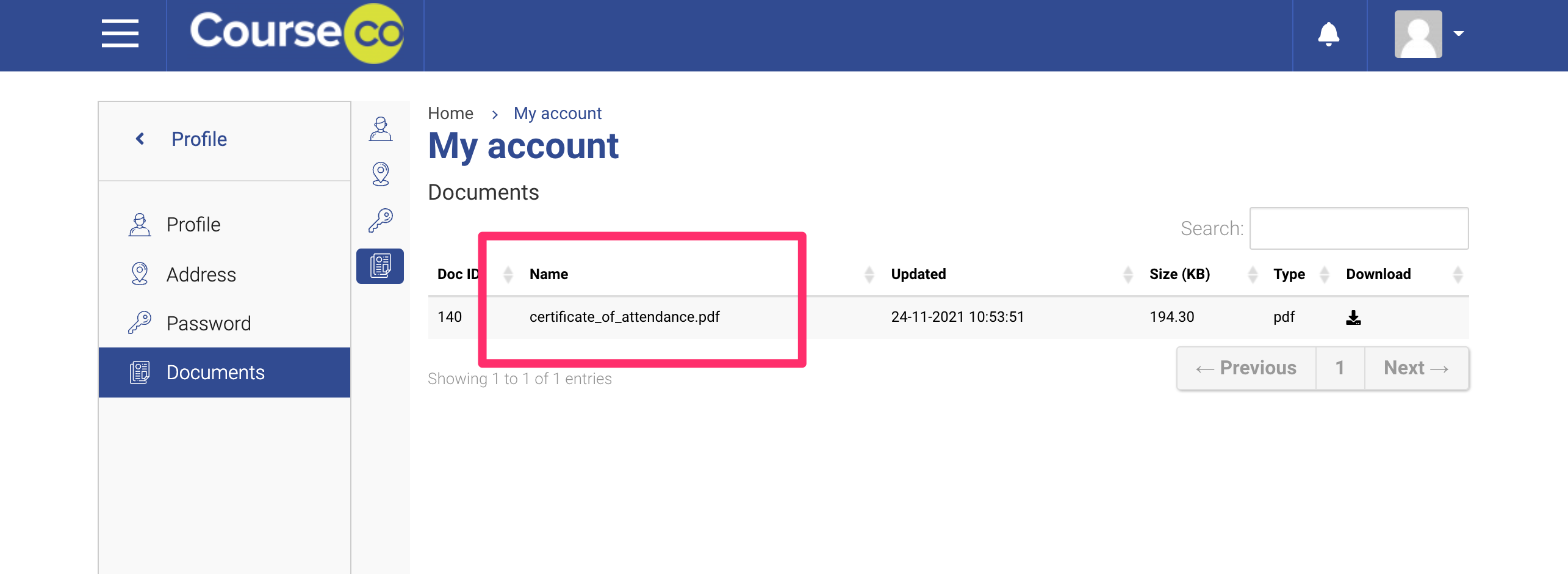 With CourseCo’s share document feature, you can manually generate a certificate / document and share it with the concerned contact. To share a document to the contacts portal. When the contact logins, they can see their shared documents via Profile > Documents. please follow these steps: