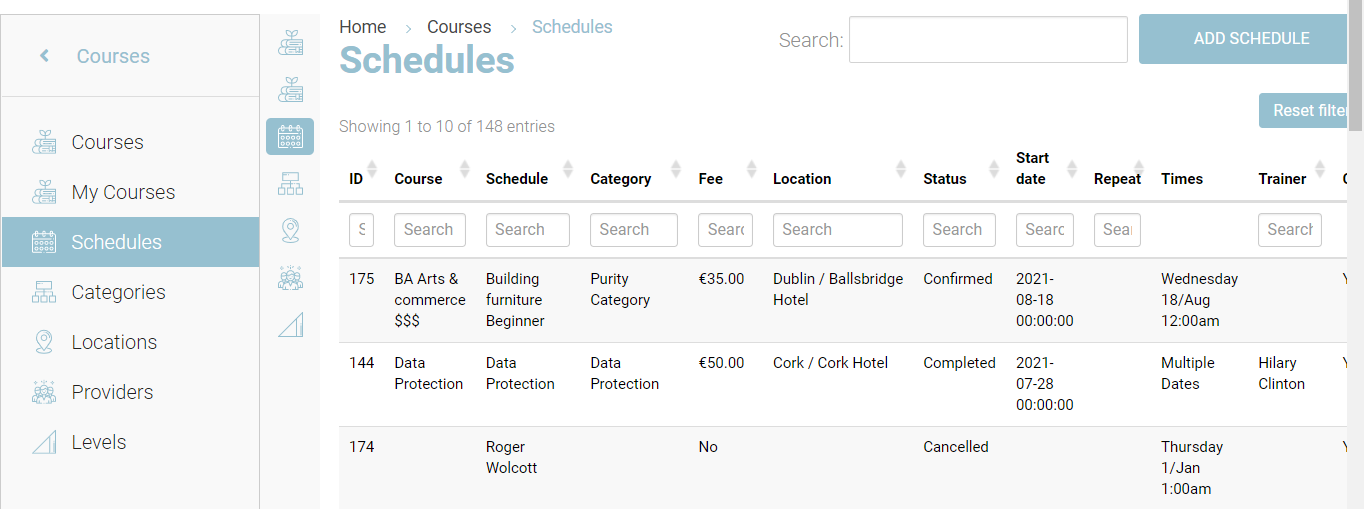Select Schedules within the Courses Plugin