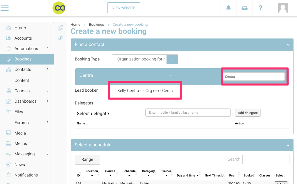 Select the schedule that you want to book for your delegates