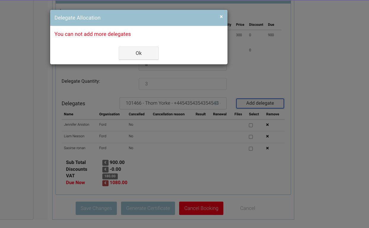 For eg: My booking has 3 delegates, I already added 2 so I can add 1 more or remove my 2 previous delegates