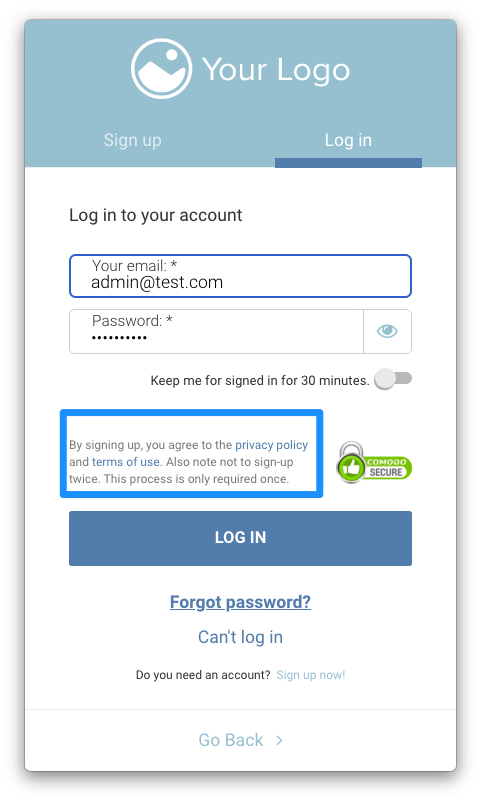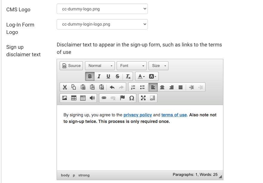 When you sign up with CourseCo, you have the flexibility of choosing whether you want to go with the standard sign up text provided by CourseCo or you can choose to have a customised text best suited for your business.