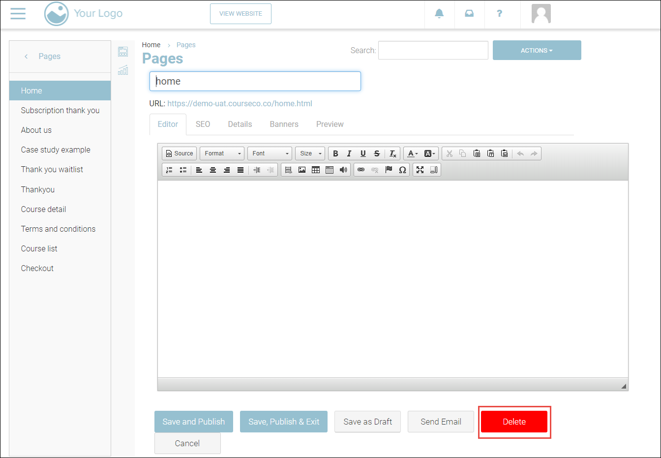 Deleting a page removes it completely. You will not be able to access the pages once they have been deleted. This action is essential in cases when the course becomes obsolete, or you no longer require a particular page.