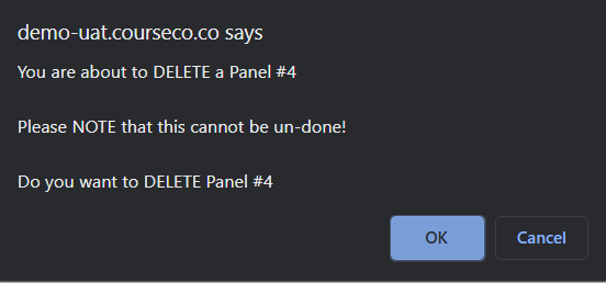 If you wish to permanently remove a panel from the website, you can do so with the Delete option.