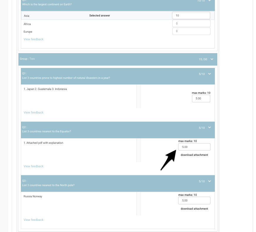 Additionally, if a student has attached an answer, you can also download and review it by clicking on 'Download attachment ' below the marks input