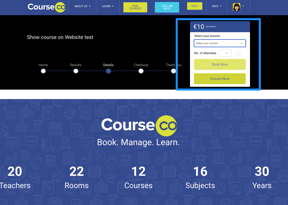 In the Bookings tab> Turn ON the setting for Book on Website