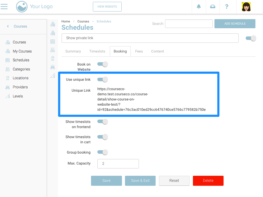 Private Link to a schedule is a unique feature provided by CourseCo. This private is not published on your website but visible to you in your back-office. You can also send this private link to the selected clients that you want.