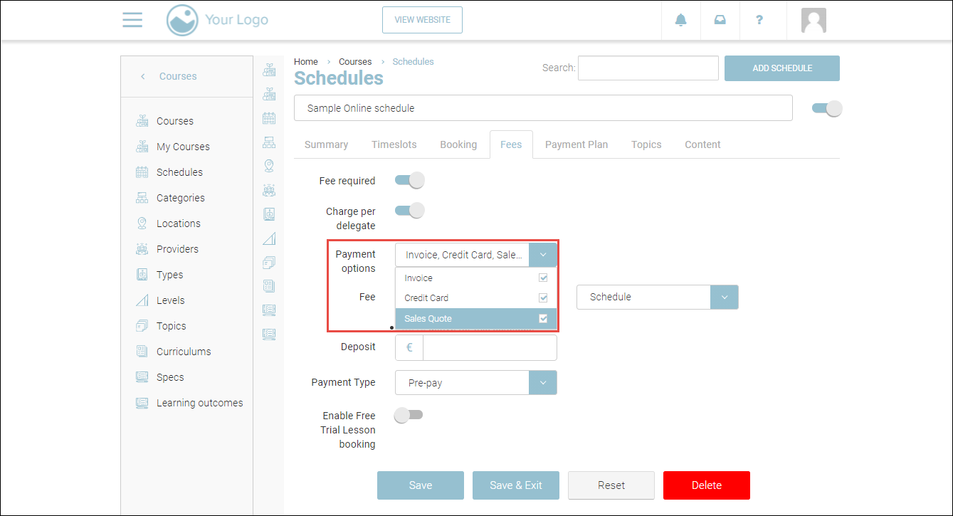 How to add payment options to a schedule