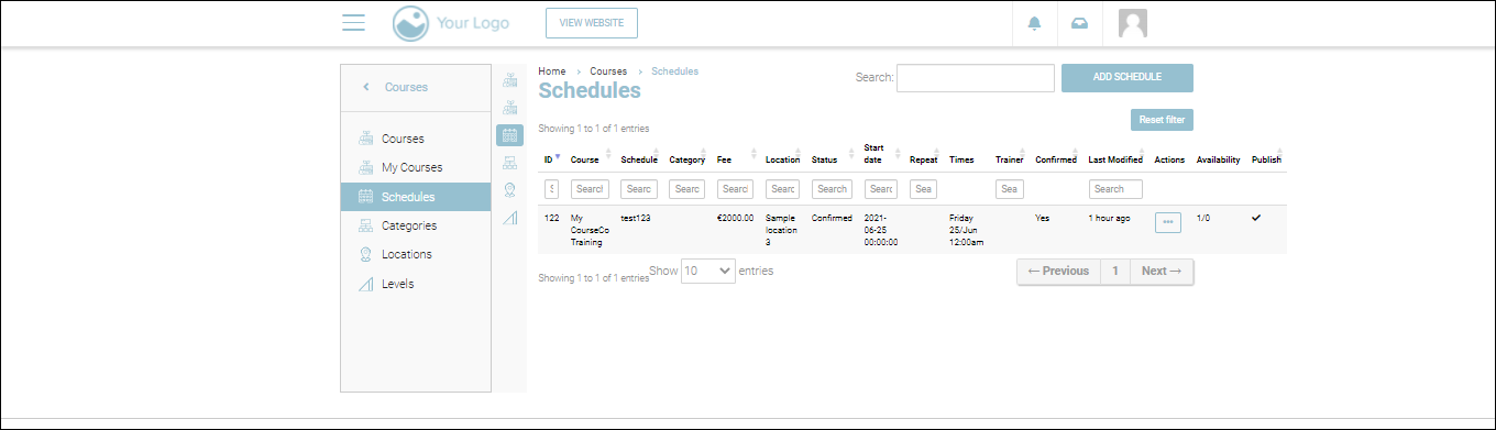 3. Navigate to Courses > Schedules.
