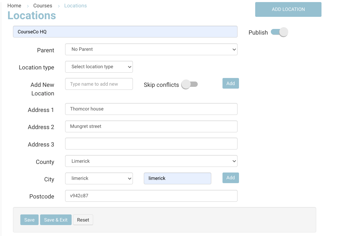 Enter the Location title eg CourseCo HQ