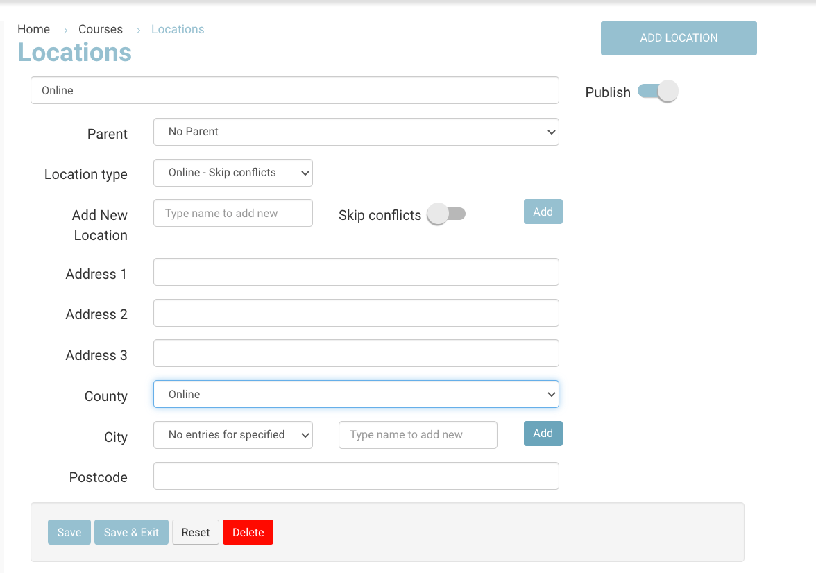 Select Location type eg online - skip conflicts
