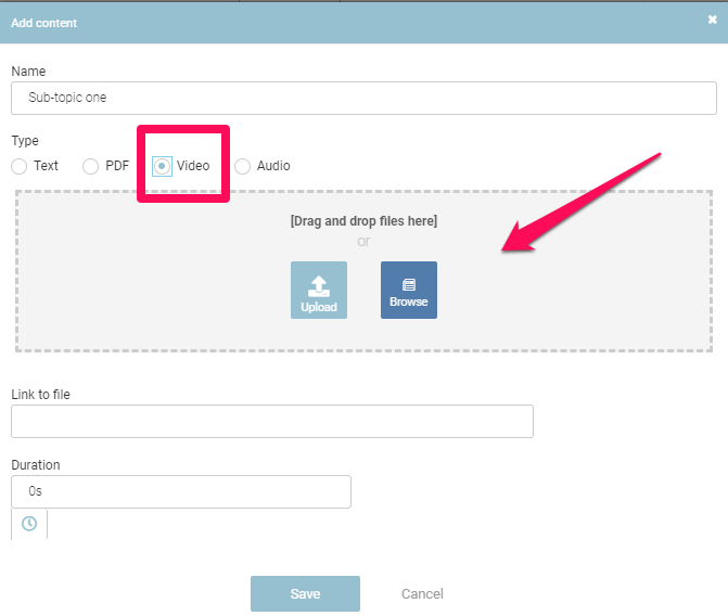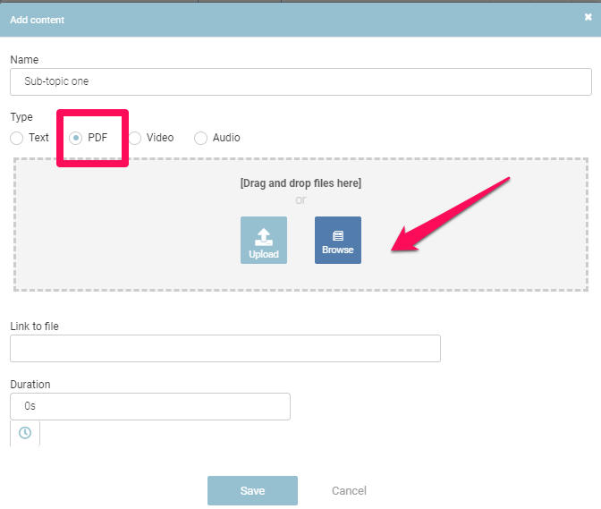 Outcome: The PDF will be added saved and added to the sub- topic.