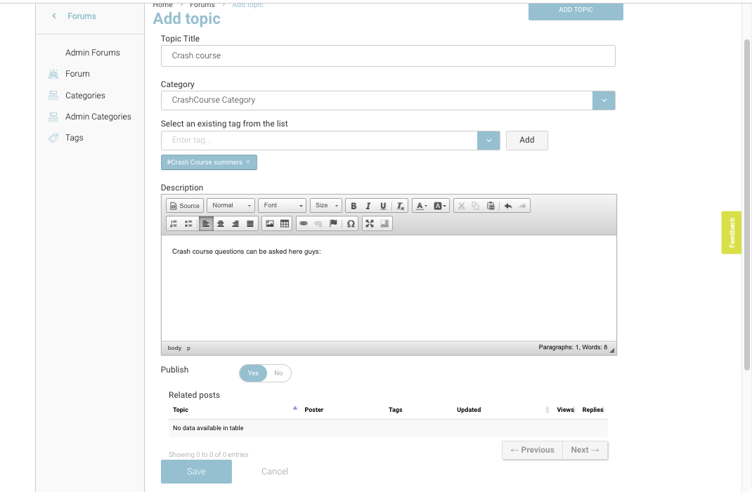 If you have existing topics that are related to this topic, you will see them in the ‘Related Topics’ list below