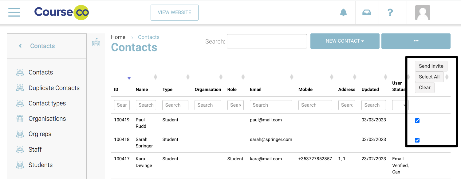 When you invite a contact to login, they may ignore the invite and you may need to invite them again. This can be done very easily using the Bulk Invite feature