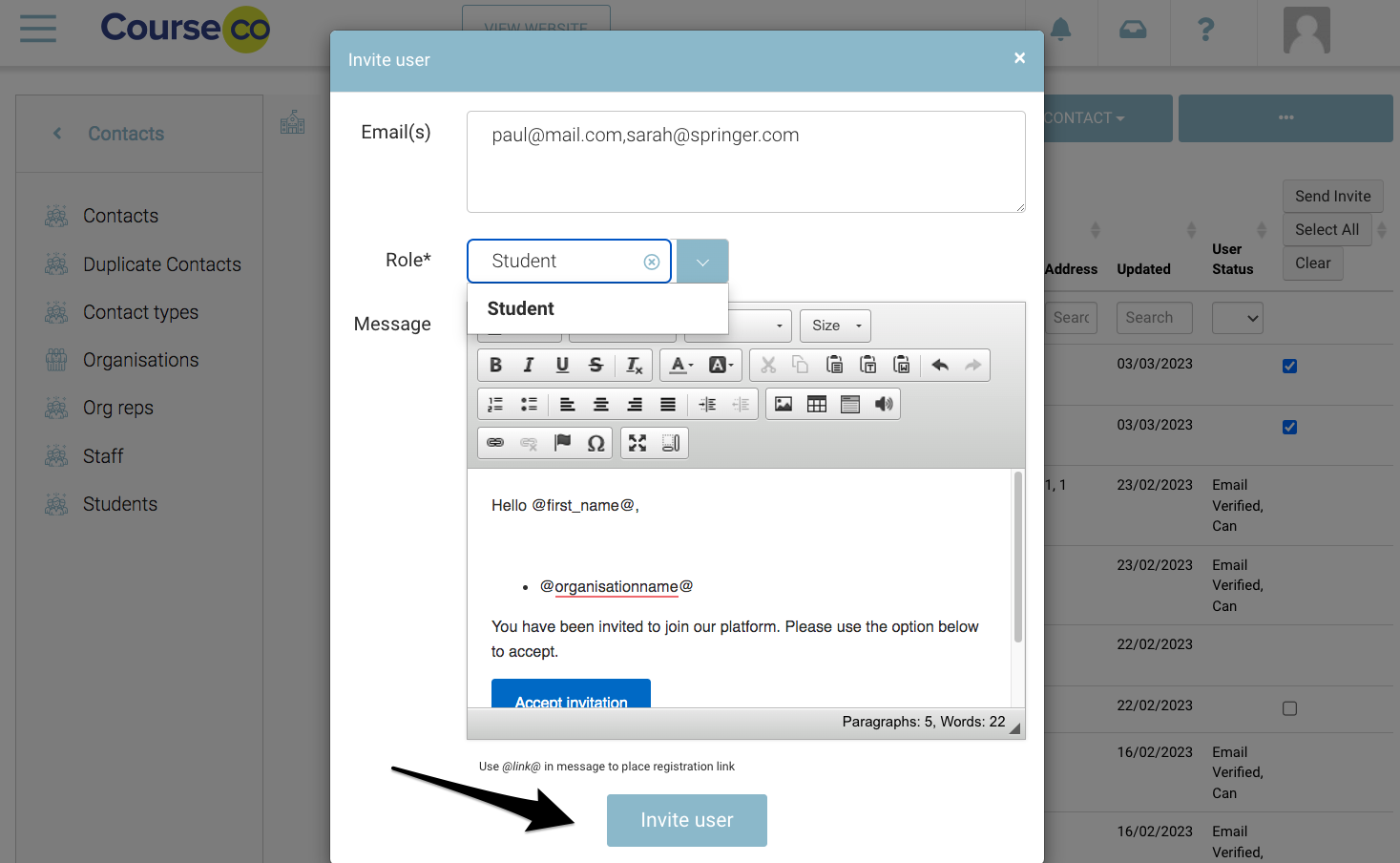 Admin | Resend a invite email to a contact who has not logged in accepted/logged in yet