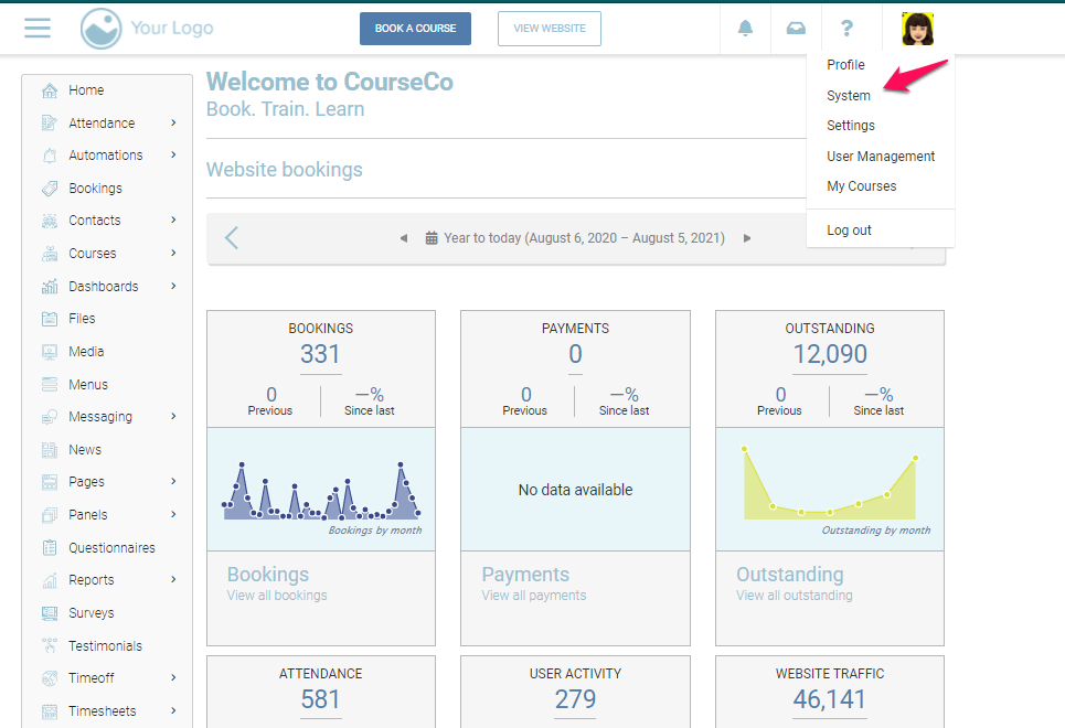3. Select System from the dropdown