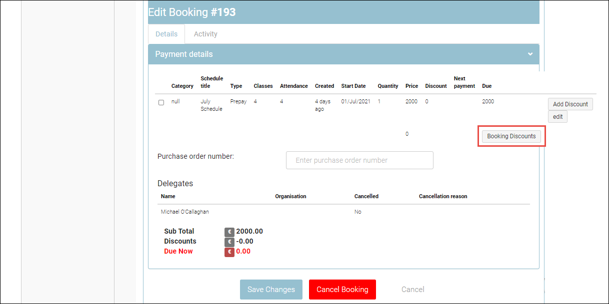 You can create back-office bookings and apply discounts before completing the booking so that the contact receives a reduced cost. You can either apply discounts using coupons or apply custom discounts to bookings.