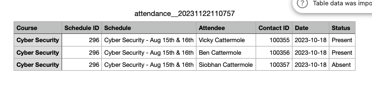 Filter by Student eg Tom Hanks, edit date range to 1 year to view stats for the student over one year and download as CSV and review the information locally