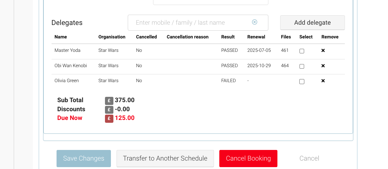 Booking | Pass / Fail /Retest / Did not attend / retest / cancelled - Management of Attendees