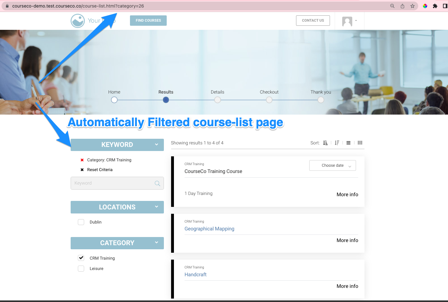 Create Category or Course Type filtered URLS to embed on your website