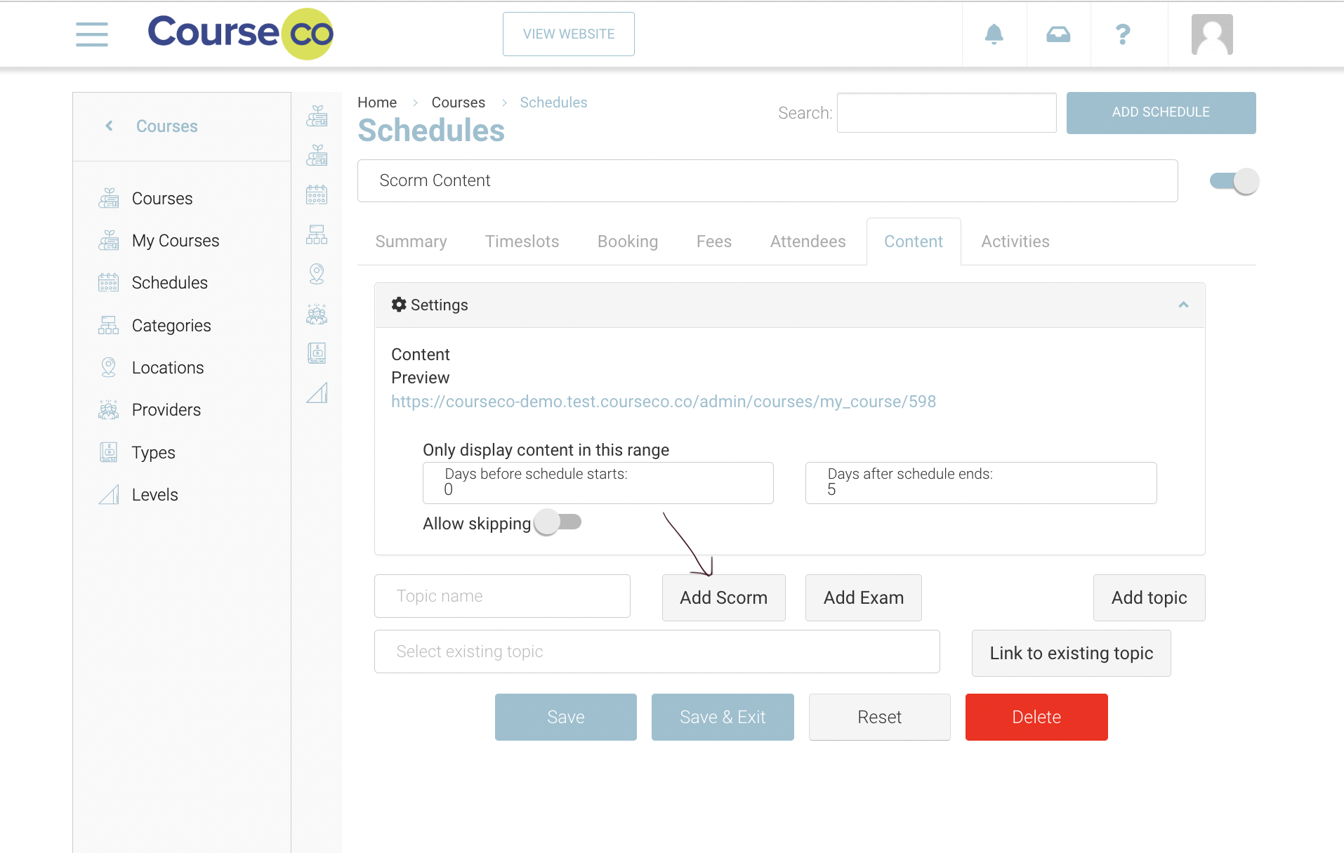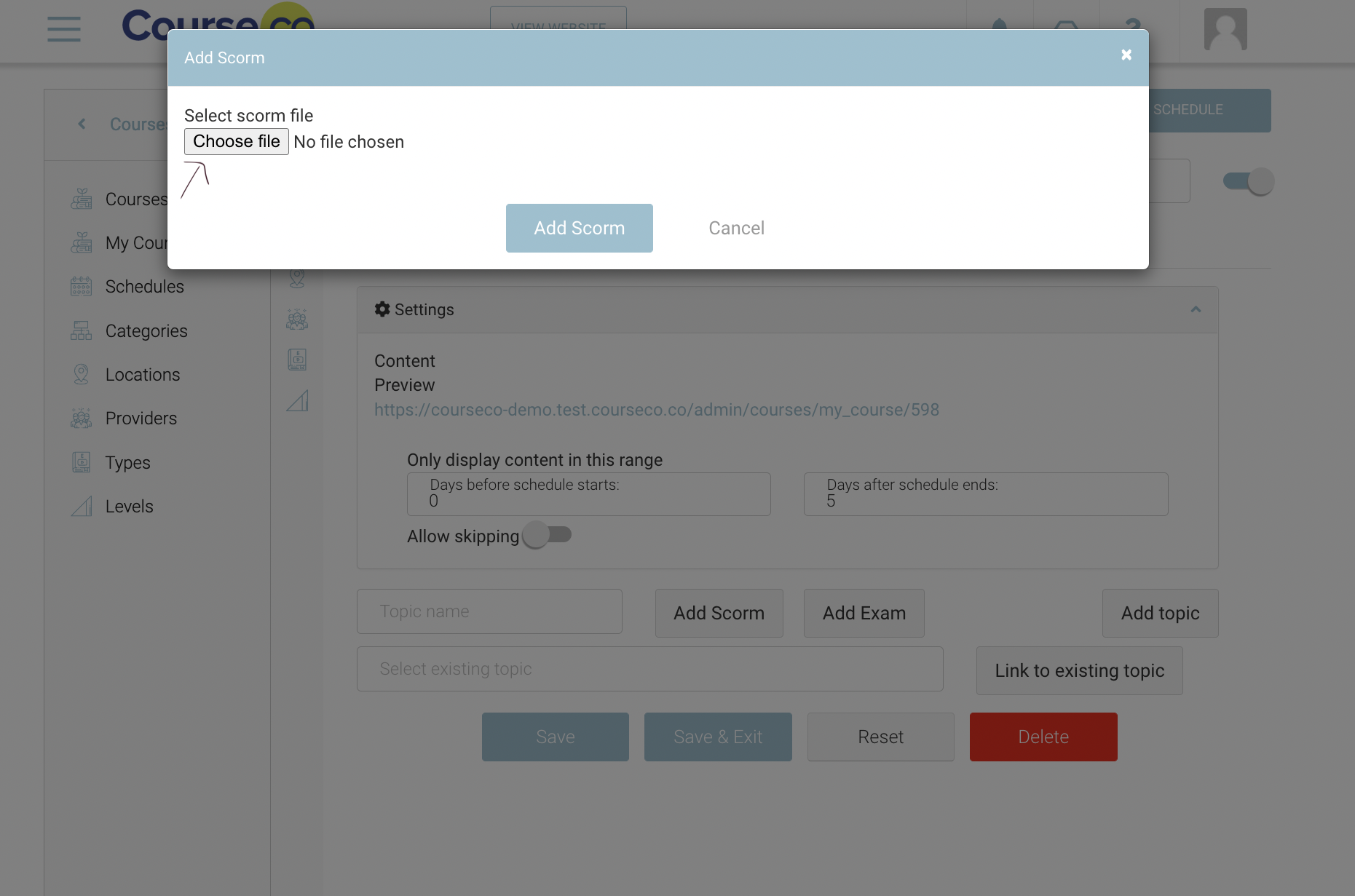 Uploading Scorm Content to a schedule