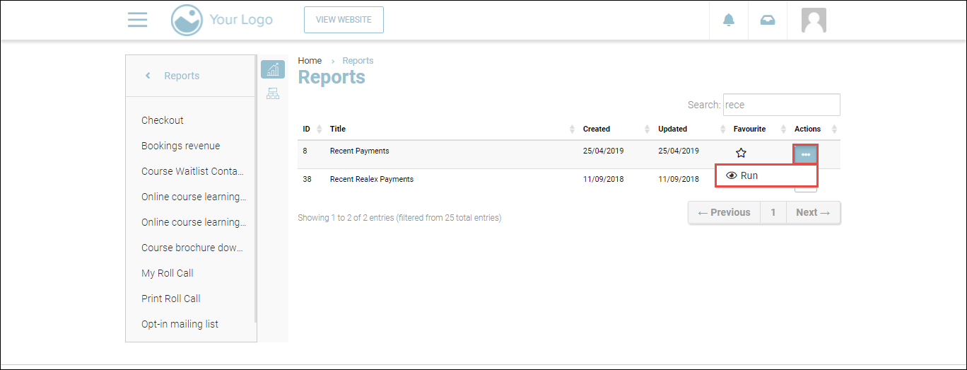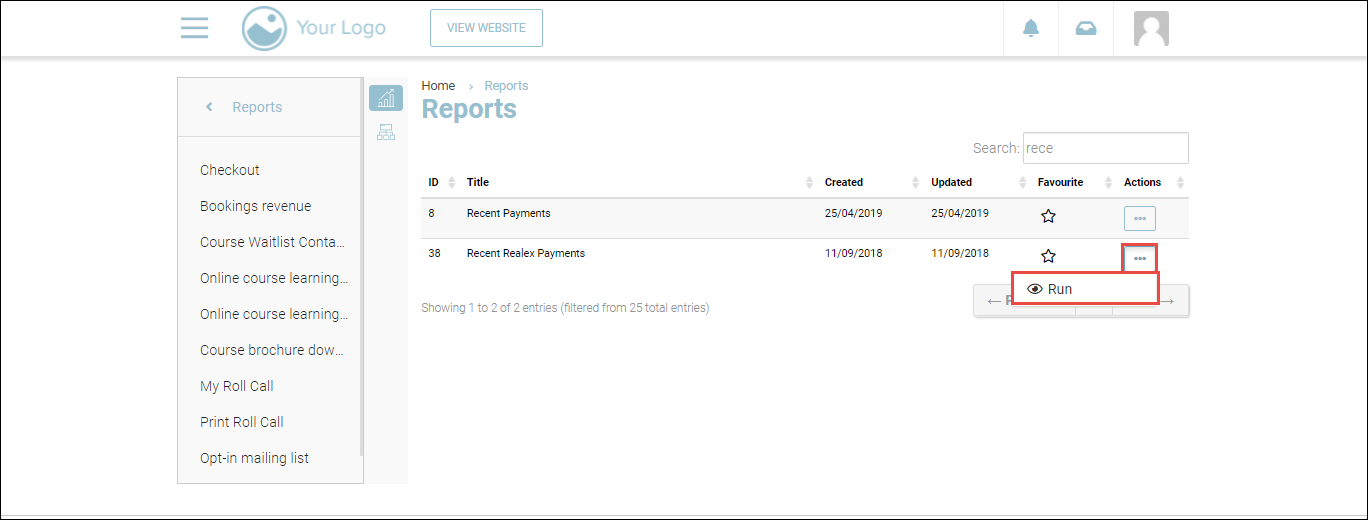 2. Search for the Recent Realex Payments report.