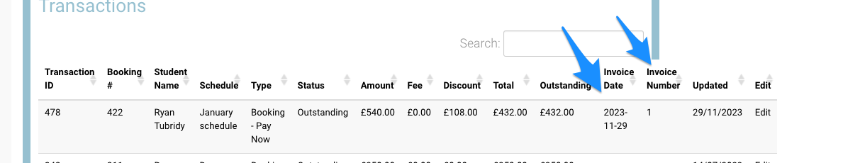 A Invoice ID and Invoice date will be applied to the Transaction - this can be found on the accounts tab of the contact.