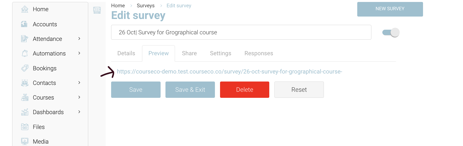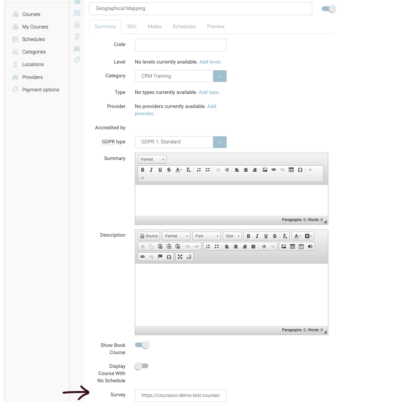 Admin have the option to link a created survey to a course. There are a number of ways this feature can be used to receive feedback on the course.
