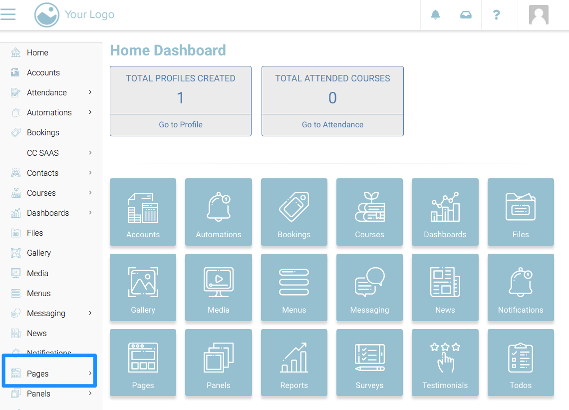 Note: Do not delete the following pages, as they are system pages required for CourseCo to function properly: