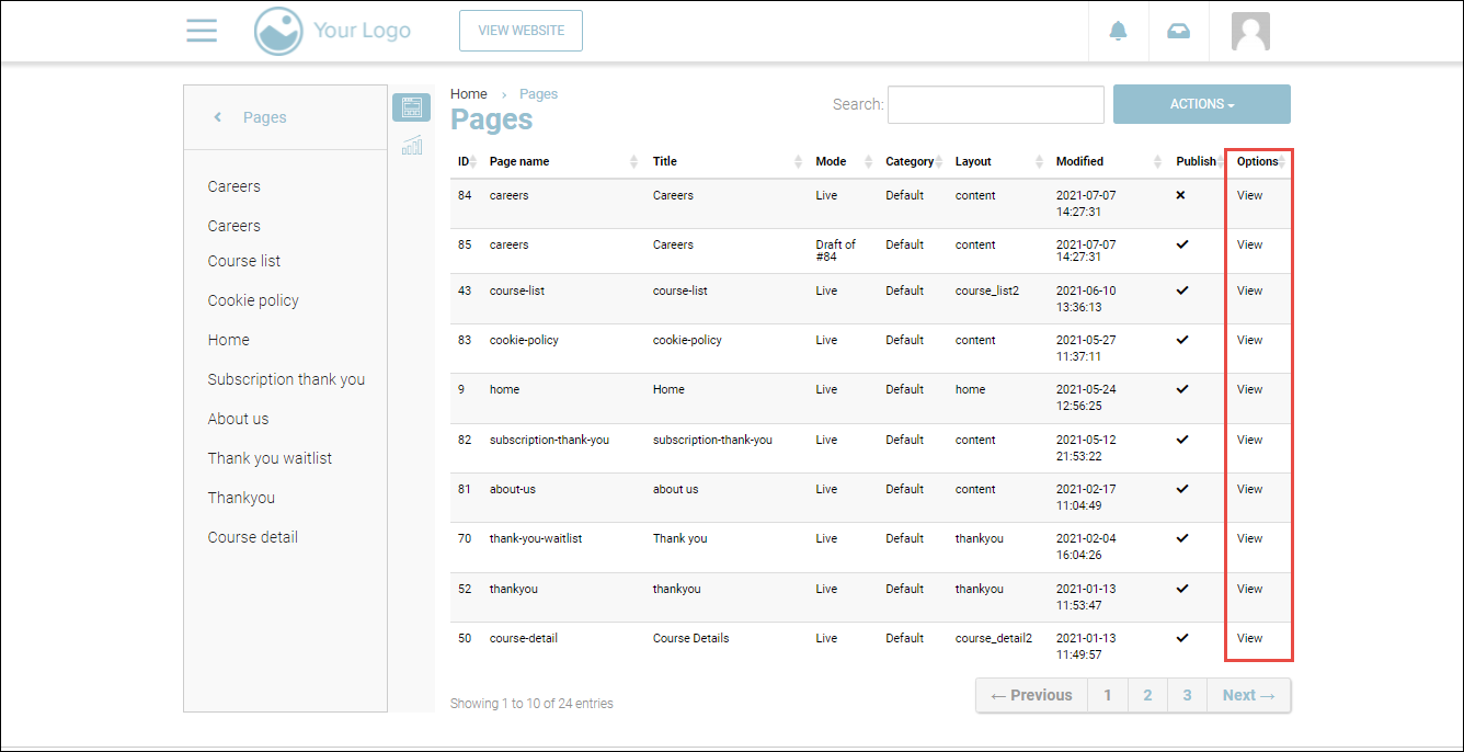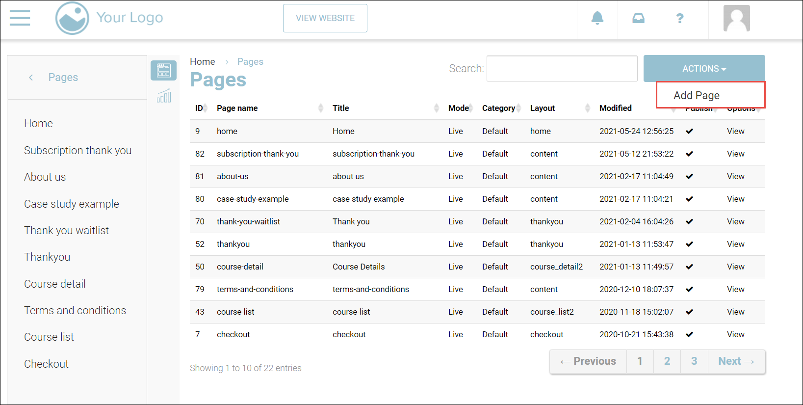 Deleting a page removes it completely. You will not be able to access the pages once they have been deleted. This action is essential in cases when the course becomes obsolete, or you no longer require a particular page.