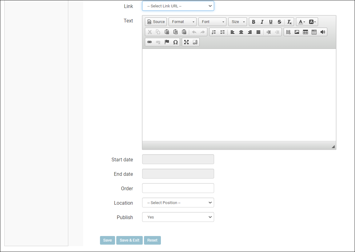 8. Enter the Start Date, End Date, and Order details for publishing.