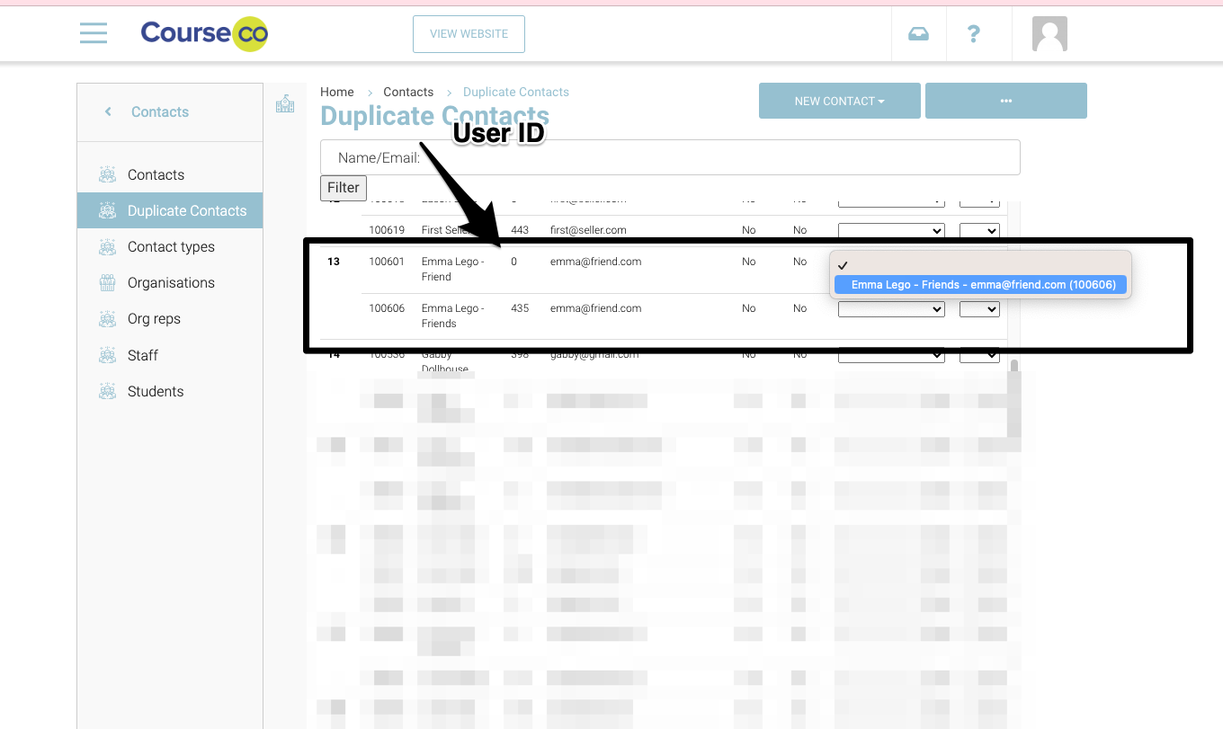 Left menu, select Duplicate contacts