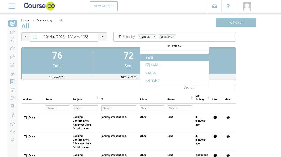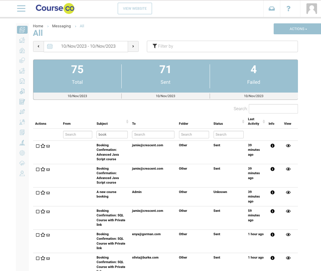 The messaging all folder is very useful as you can see every email sent from the system. You can filter your results also, to refine by subject line / email.