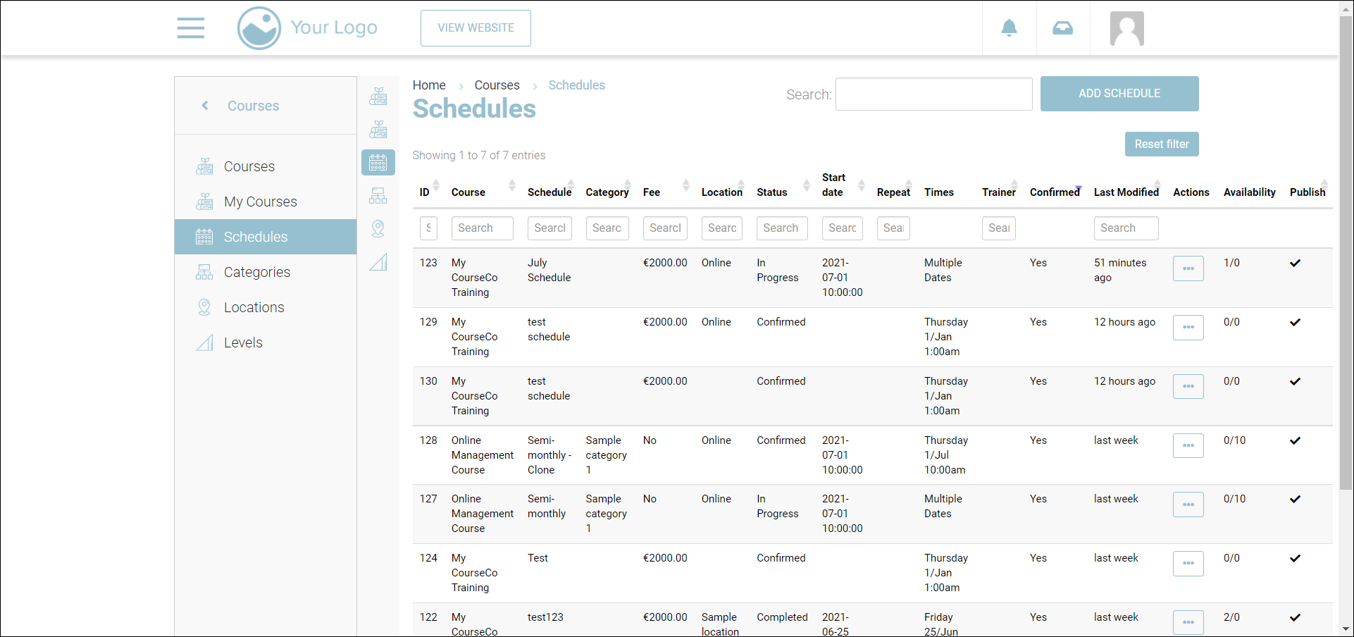 Navigate to Courses > Schedules.