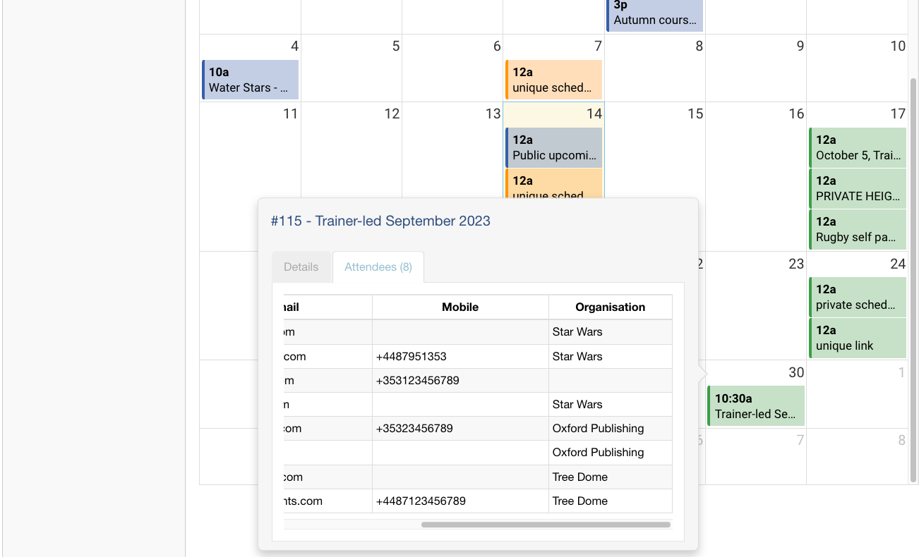 Enable your sales team to login to a portal and view the ALL Timetable. Sales team can login, see the global timetable and view upcoming bookings, attendees and the organisation they are working with.