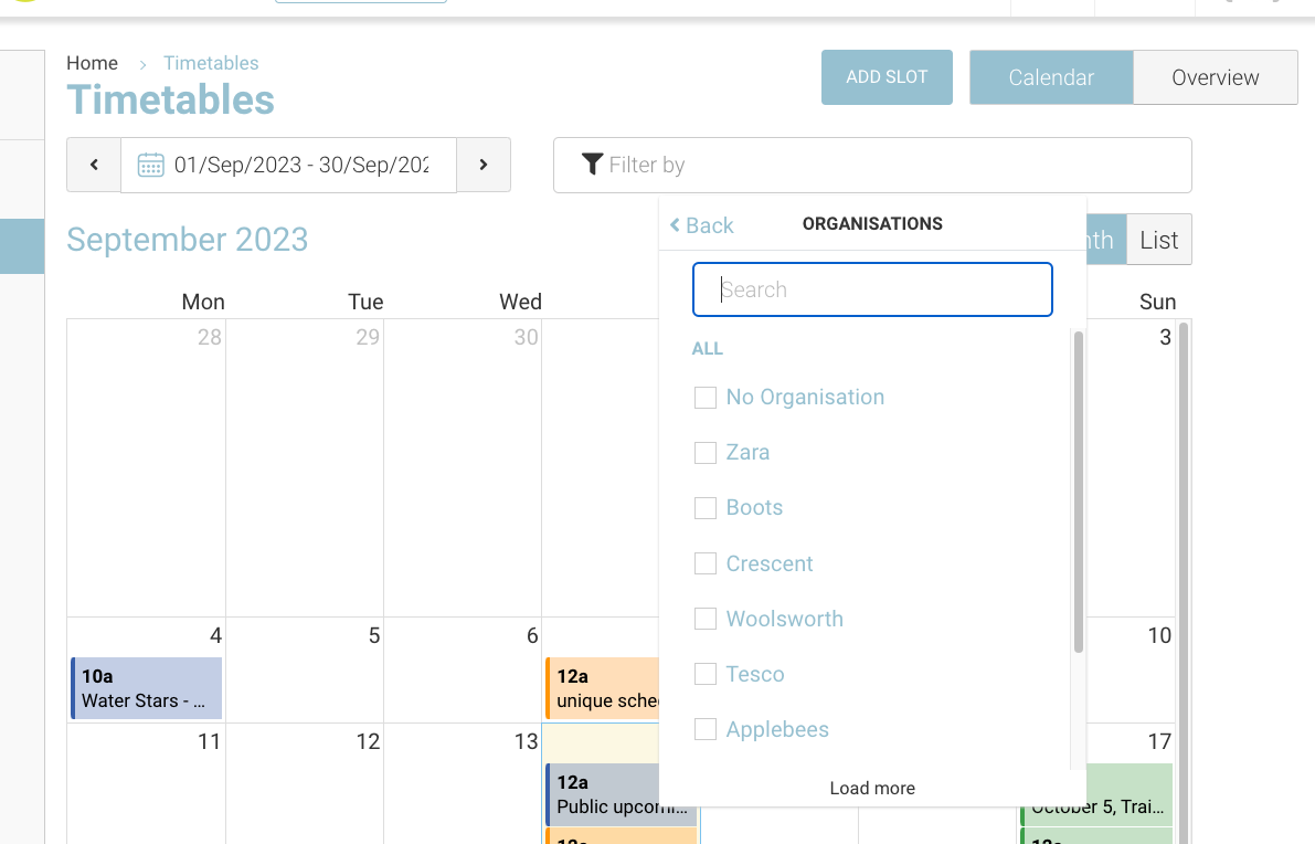 Once the sales team contact logs in they can see timetable, to navigate through the timetable, they need to:
