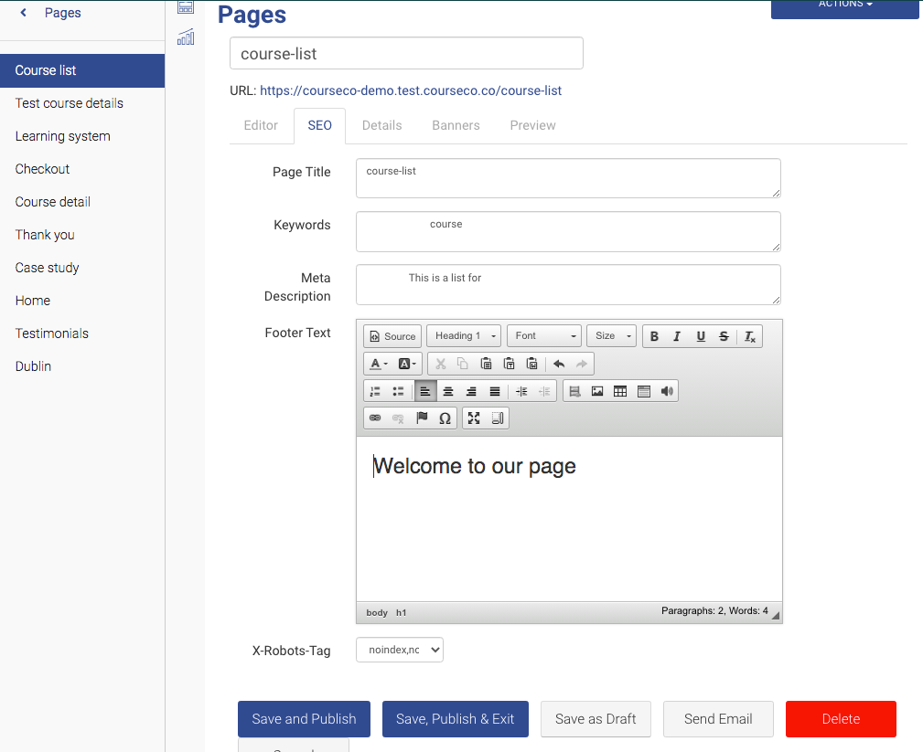 In the Meta description, enter your page description to enhance your Search engine optimisation