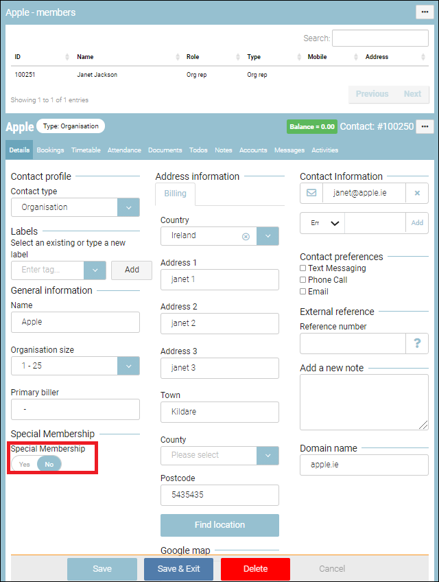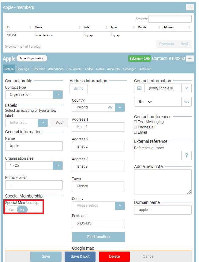 5. In the Special Membership field click Yes if you would like to apply Member Discounts.