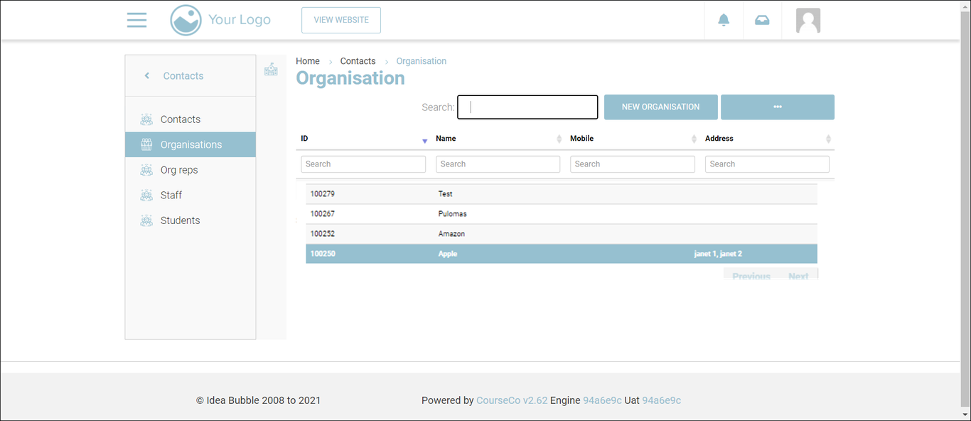 3. Click the ID of the organisation to which you want to apply a special discount.