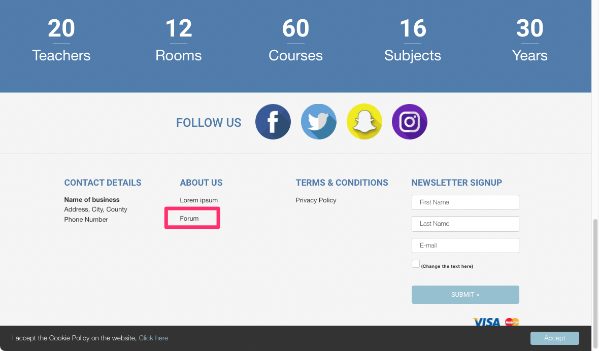 Go to the website footer and click on Forum
