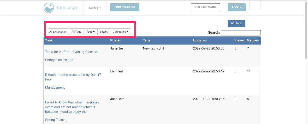 Let’s take a deeper look to understand the functions and filters of CourseCo’s Forum