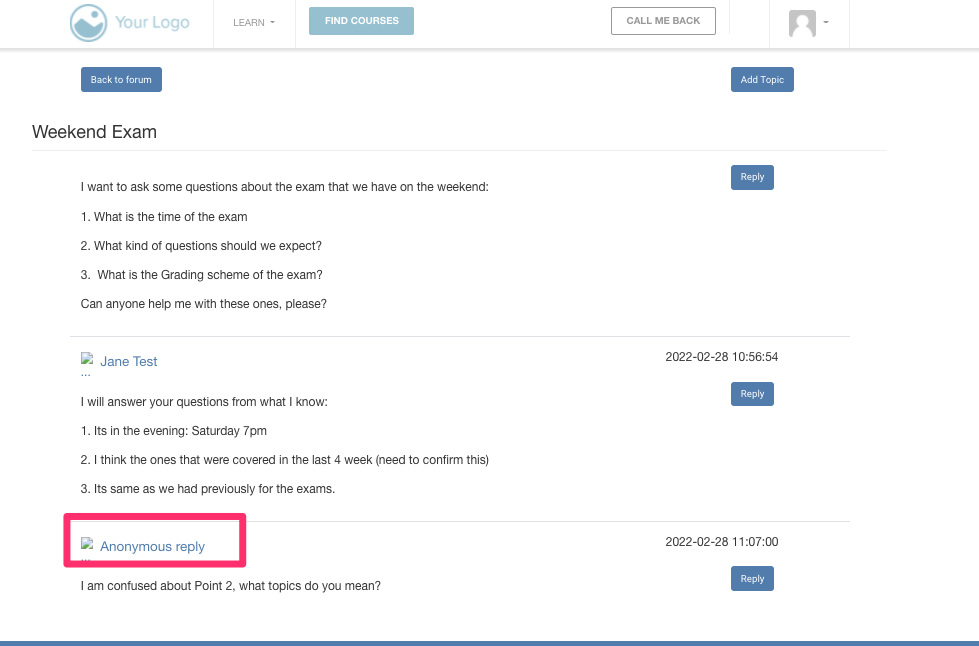 Adding an Anonymous Reply as a Student