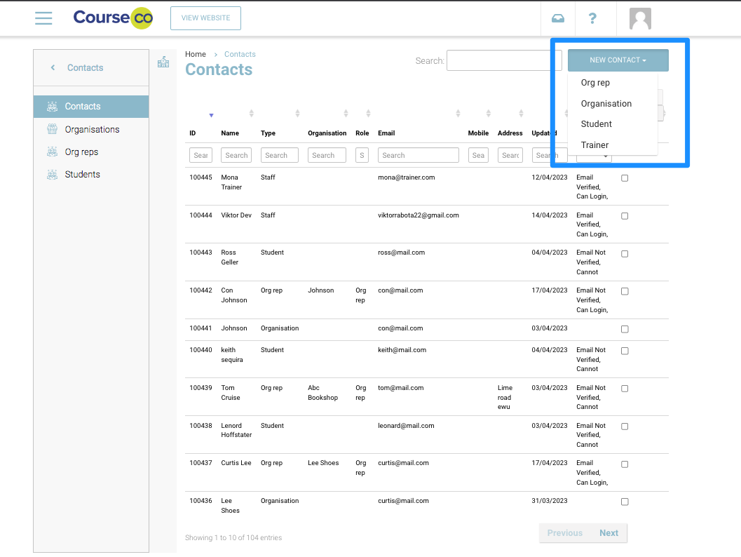 Note: Admin contacts are created by CourseCo team depending on the client’s license