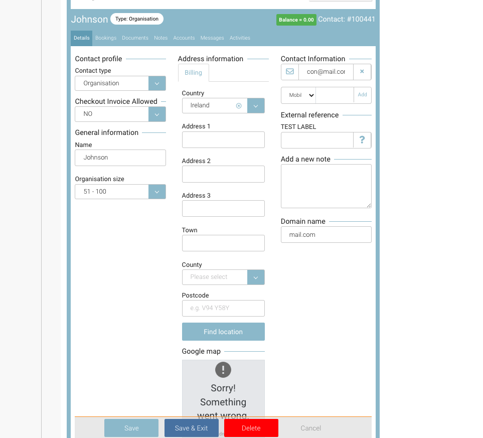 In contacts details, input details of the contact. For eg: first name, last name, email, organisation